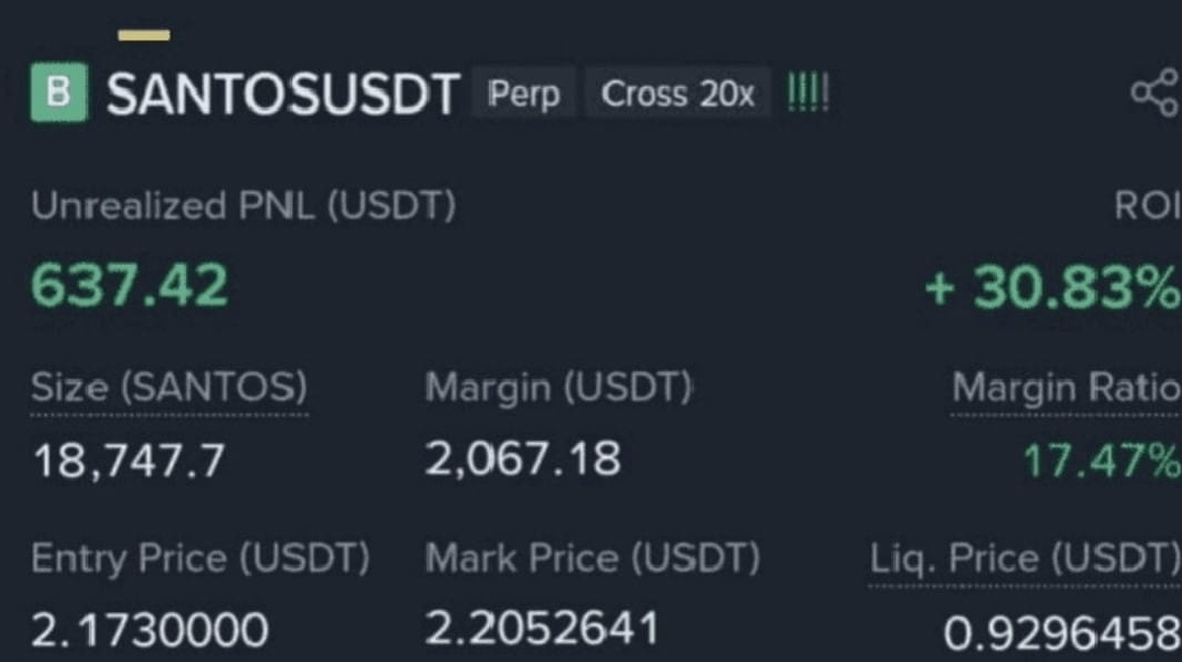 Il mercato ci ricorda ancora una volta perché disciplina, pazienza e una corretta gestione del rischio sono le abilità più importanti che un trader può avere. La posizione odierna su SANTOSUSDT Perp (Cross 20x) sta mostrando un solido slancio e i numeri sembrano ottimi finora.