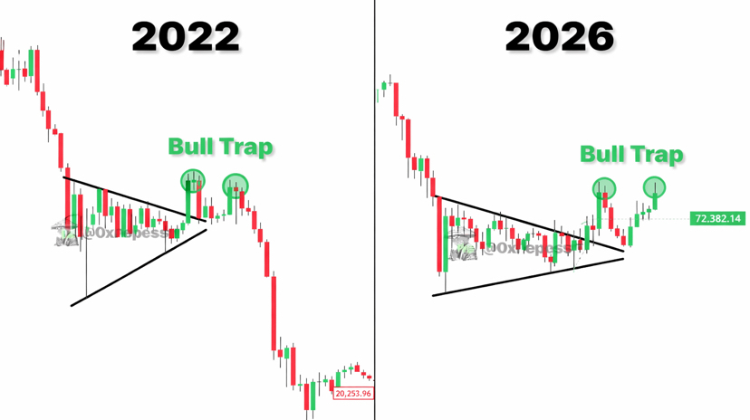 Il mercato del 2026 non ha ancora ripetuto la piena entità del declino del 2022. Tuttavia, le somiglianze in entrambe le strutture e nella psicologia di mercato sono difficili da ignorare. Quando compaiono schemi come questo, l'attenzione si sposta dalla rottura stessa a se il mercato può stabilire chiari livelli di continuazione.