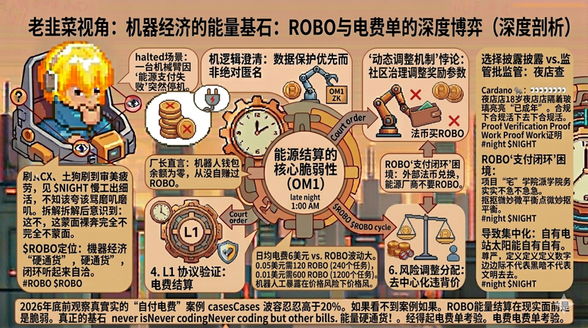 时间信号很明确:2026年底前,我需要看到至少3个真实的、可持续的"机器人自付电费"案例,且这些案例的ROBO价格波动容忍度高于20%。如果看不到,说明ROBO的能量结算模型在现实能源市场面前是脆弱的。
