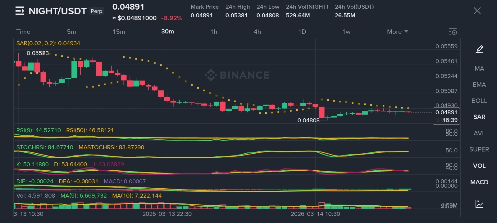 I’ve been checking the 30-min charts on $NIGHT , and the SAR levels are starting to flatten out. Usually, that means we are consolidating before a big move. If u want to be ready for the dApp rush, holding the main token to generate ur own fuel is the smart play. The angels fall for the hype, but the real ones watch the infrastructure. Stay sharp and #dyor .