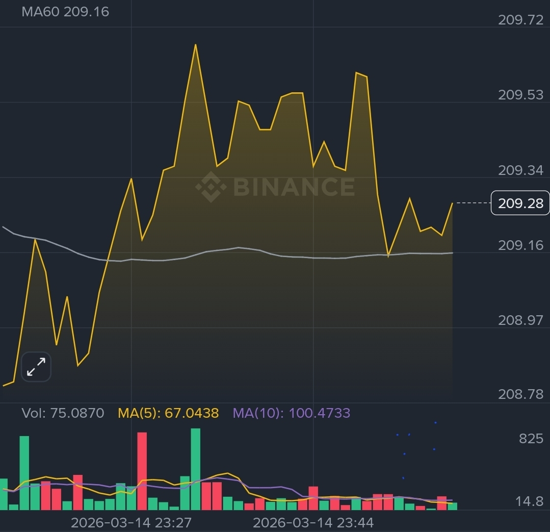 Currently, the market is trading near 209.28, slightly above the MA line, which may act as a dynamic support level if buying pressure continues.