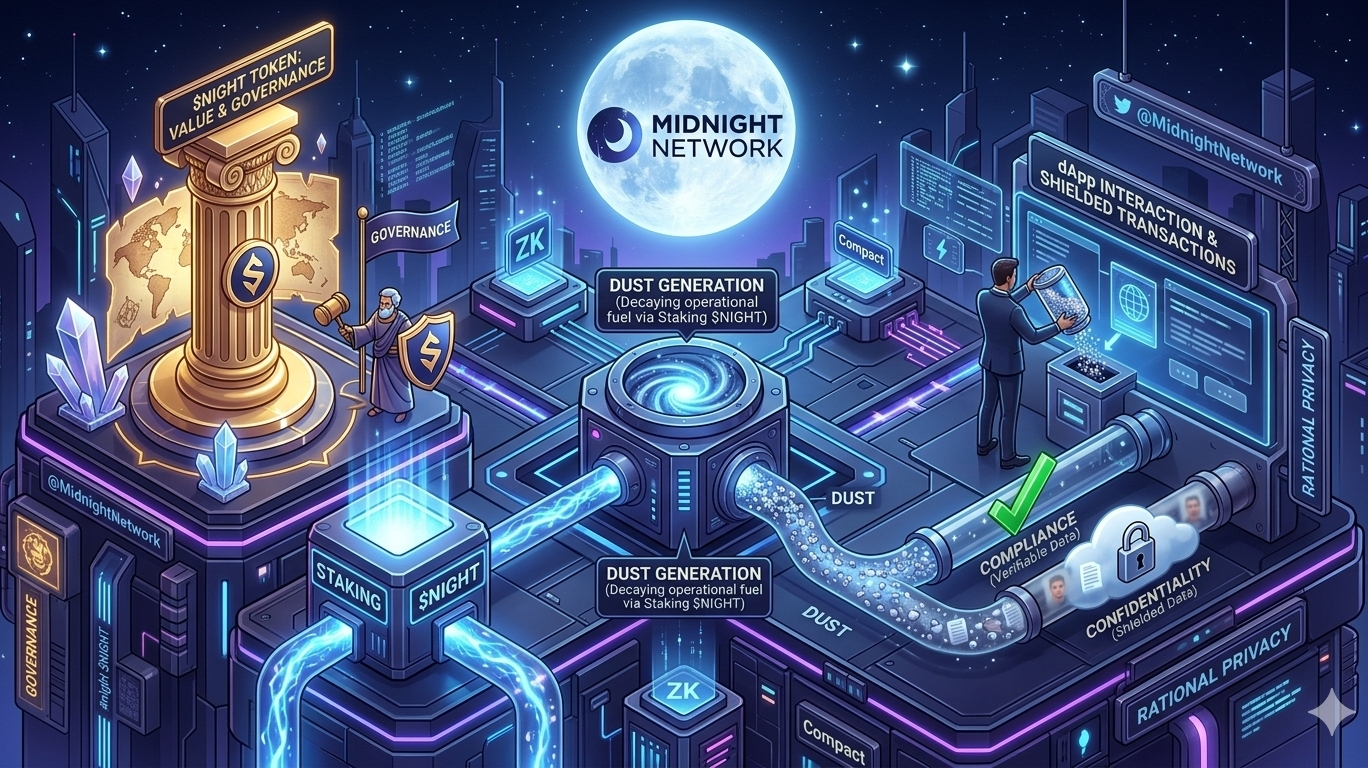 Unlike traditional gas fees that fluctuate wildly with market volatility, DUST is a shielded, non-transferable, and decaying resource used exclusively to pay for metadata-shielded transactions and zero-knowledge computations. By simply holding $NIGHT, users automatically generate DUST. This guarantees predictable, stable operational costs for enterprises and developers, completely decoupled from the market speculation of the $NIGHT token.