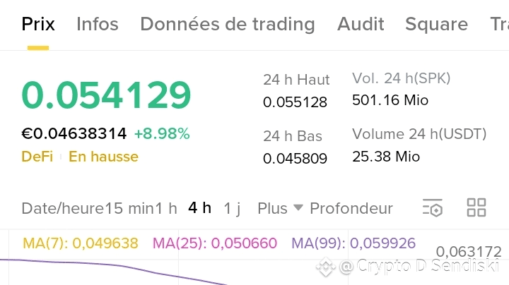 1. Aumento tecnico: SPK ha registrato un aumento significativo passando da 0,046507 $ a 0,053389 $, con un aumento di circa il 14,8% in due ore, sostenuto da un forte aumento del volume di oltre 29,8 milioni di USDT. Anche il MACD è diventato rialzista, con la linea del MACD che passa sopra la linea di segnale.