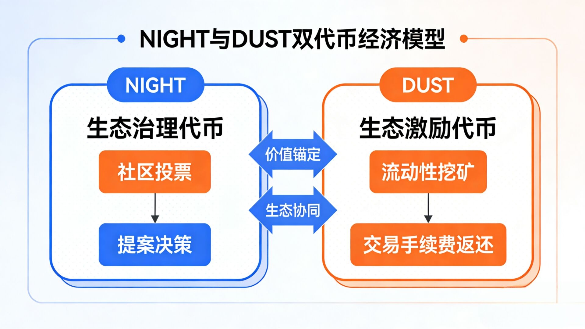 In quanto token nativo della rete, NIGHT è il vettore principale che collega i due registri. Con una fornitura totale di 24 miliardi di token, il 40% è allocato a incentivi per l'ecosistema e alla costruzione della comunità, con un programma di rilascio stabile. NIGHT può essere utilizzato sul registro pubblico per pagare le commissioni di transazione, mettere in staking i nodi e partecipare alle votazioni di governance; può anche supportare transazioni private e invocare contratti privati sul registro privato; e può generare DUST come carburante per la privacy attraverso un meccanismo, costruendo un modello economico a doppia circolazione di "token principale + carburante", che combina praticità e scarsità.
