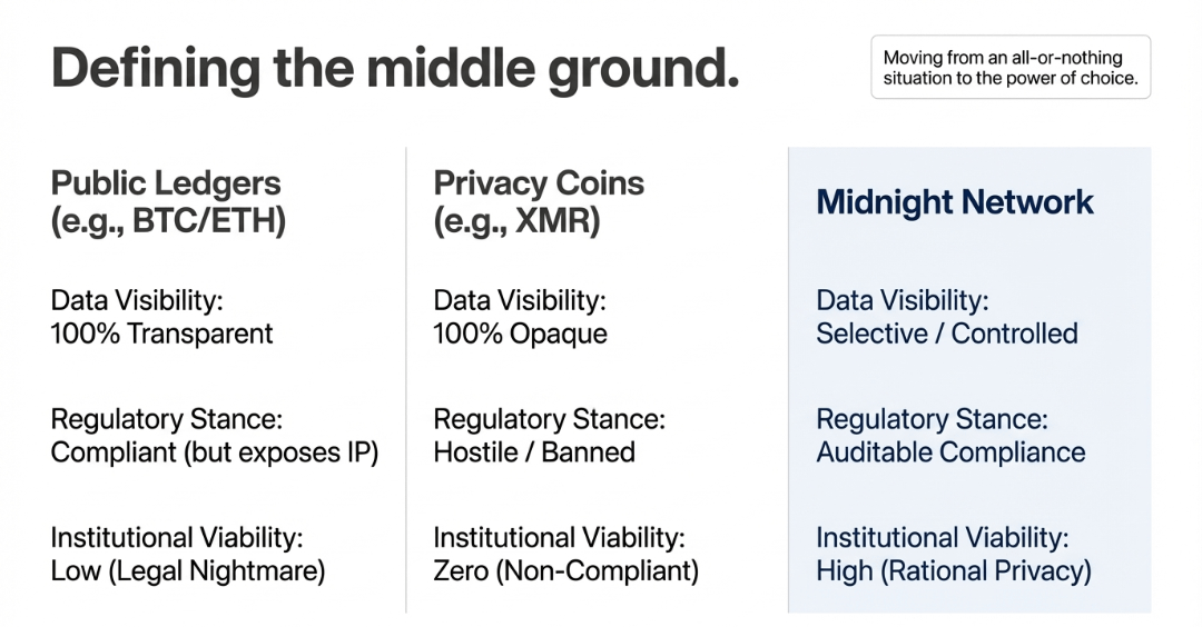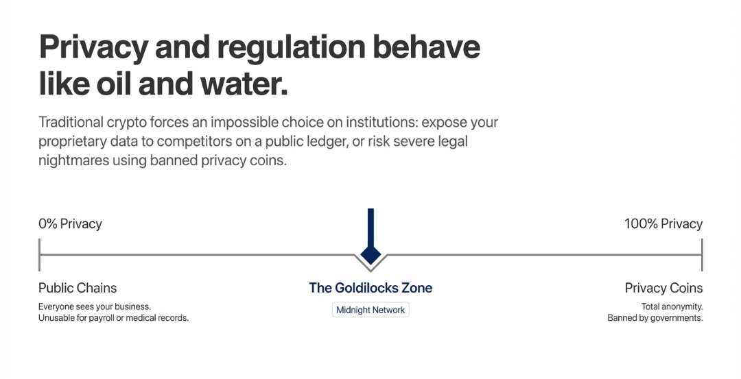 Un tempo pensavo che la privacy e la regolamentazione fossero come olio e acqua. Nel mondo della crittografia, hai o una catena pubblica dove tutti vedono il tuo business, o hai una moneta di privacy che i governi vogliono vietare. Ma @MidnightNetwork sta cercando di trovare un terreno comune che chiamano privacy razionale.