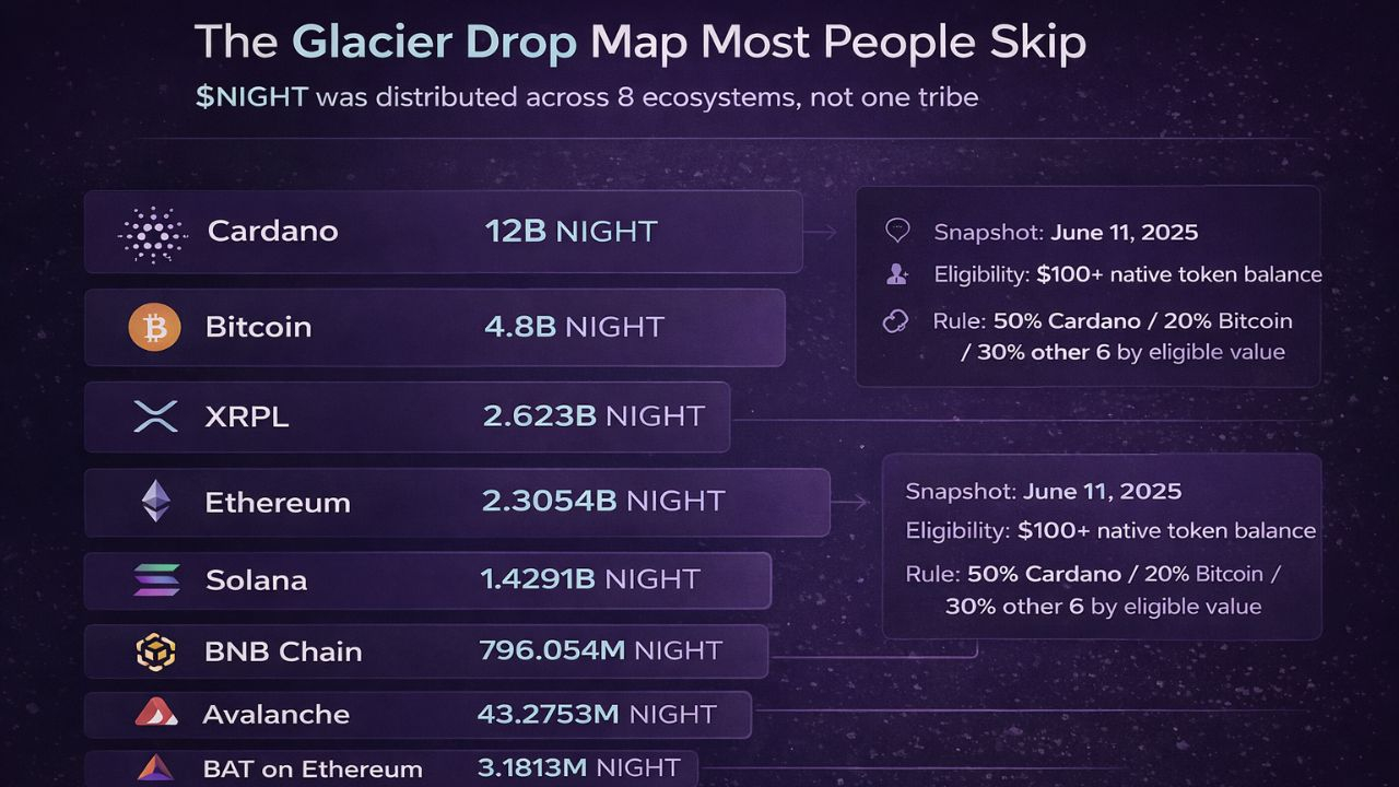 Più guardavo Glacier Drop, più mi sembrava meno un normale evento promozionale e più una mappa di distribuzione. Non solo 'chi ottiene i token', ma quali ecosistemi Midnight voleva nella stanza fin dal primo giorno.