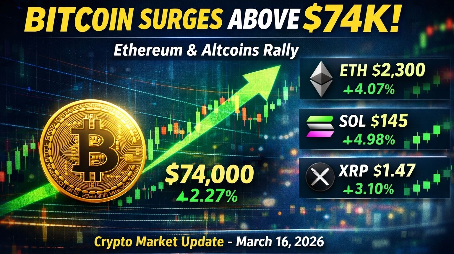 Bitcoin ha riconquistato un livello psicologico chiave oggi, superando $74.000 dopo un periodo di consolidamento. Questo movimento ha suscitato un rinnovato acquisto in tutto il mercato, con Ethereum e le principali altcoin che seguono il momentum.