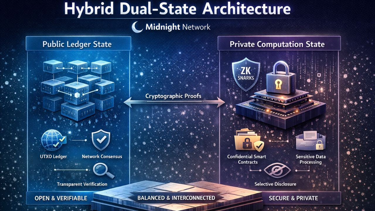 L'architettura ibrida a doppio stato della Midnight Network è una delle innovazioni tecnologiche più distintive della piattaforma. Progettata da Input Output Global, questa architettura mira a risolvere un problema di lunga data nella tecnologia blockchain: come bilanciare la verificabilità pubblica con forti protezioni per la privacy. Le blockchain pubbliche tradizionali danno priorità alla trasparenza, dove ogni transazione e interazione dati è visibile nel registro. Sebbene questa trasparenza rafforzi la fiducia e la decentralizzazione, può anche esporre informazioni sensibili. @MidnightNetwork affronta questa sfida combinando stati pubblici e privati in un sistema unificato, consentendo calcoli sicuri senza sacrificare la responsabilità.