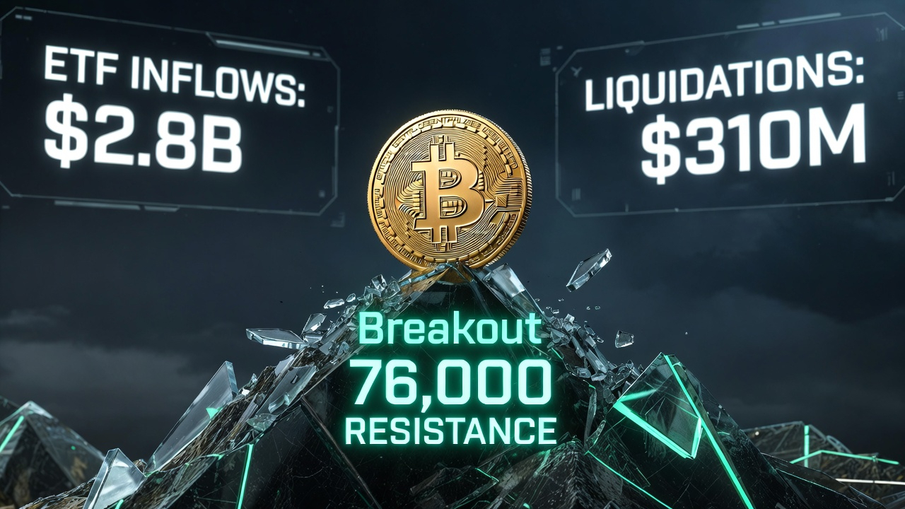 Carburante per la Liquidazione Corto: La spinta da $74.000 a $76.000 ha innescato una cascata di oltre $310 milioni in liquidazioni forzate per i venditori allo scoperto. Questo "innesco gamma" ha costretto acquisti automatici in tutti i principali mercati di scambio, accelerando la salita e lasciando poco spazio per un ritracciamento.