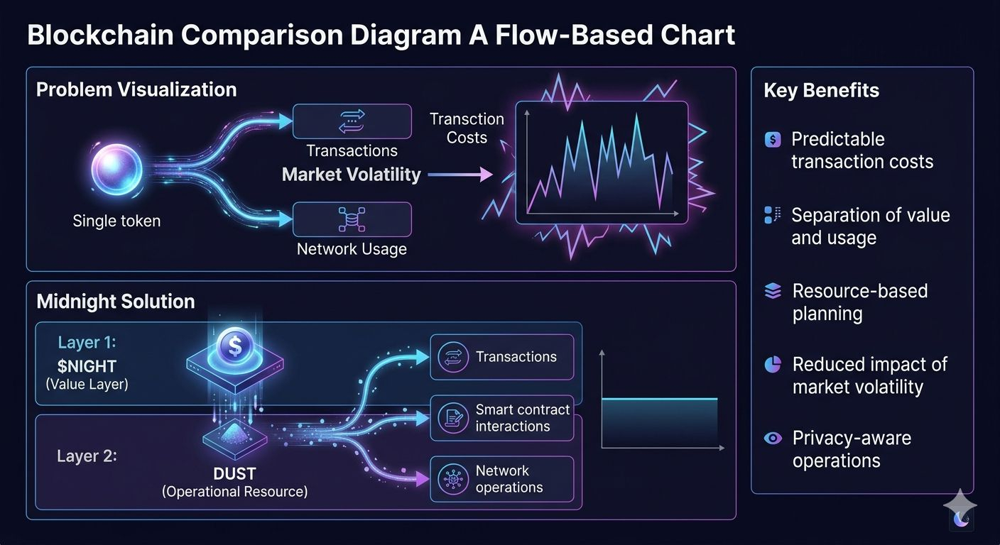 In my view, the significance of this dual-layer system goes beyond cost management. It represents an attempt to make blockchain infrastructure more stable and usable over time. By separating the asset that holds value from the resource that powers activity, Midnight introduces a structure that feels closer to how real-world systems manage resources.