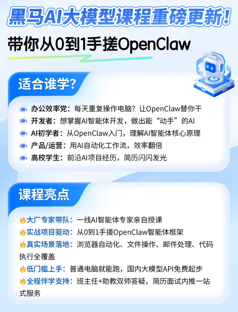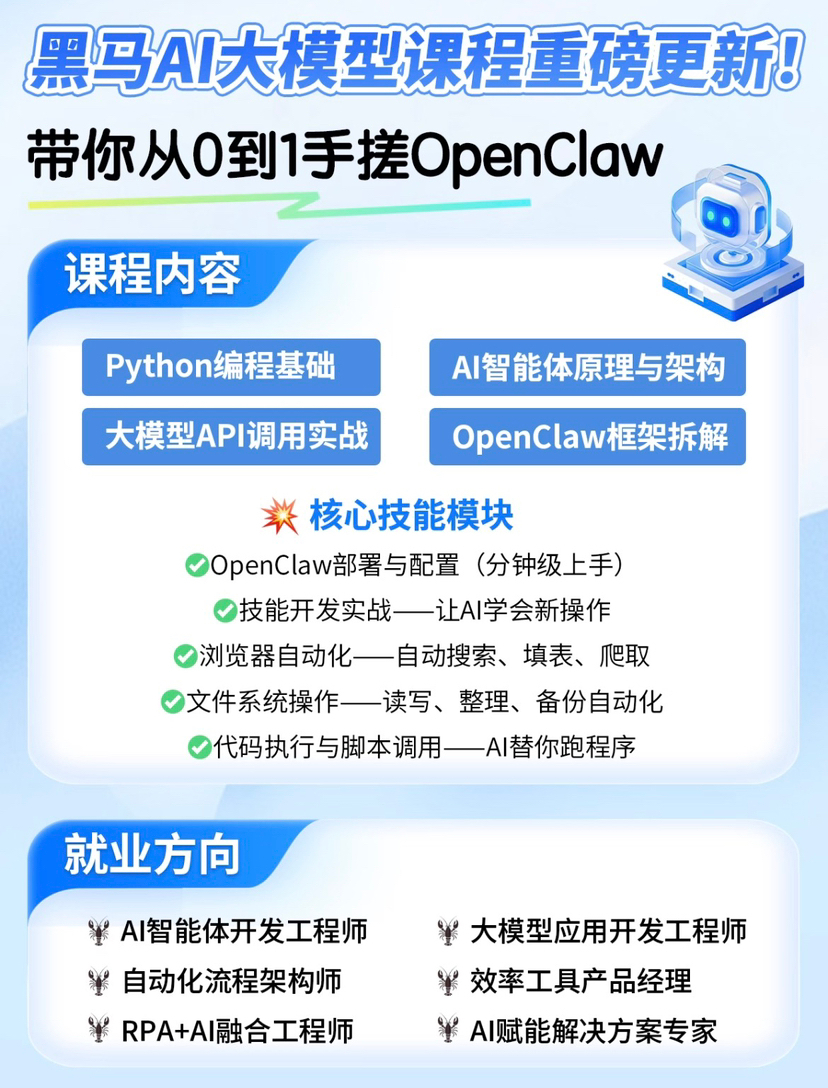 👍黑马AI大模型训练营带你从0到1「养」一只小龙虾