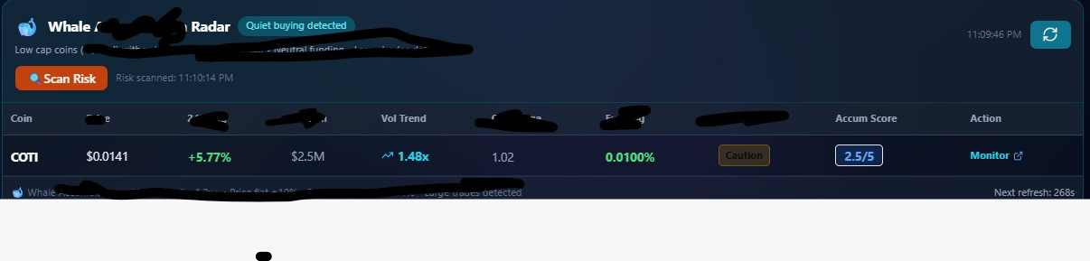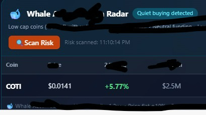 👀 $COTI — Quiet accumulation detected. Price $0.0141. Volume rising while price stays flat — classic stealth buying pattern.