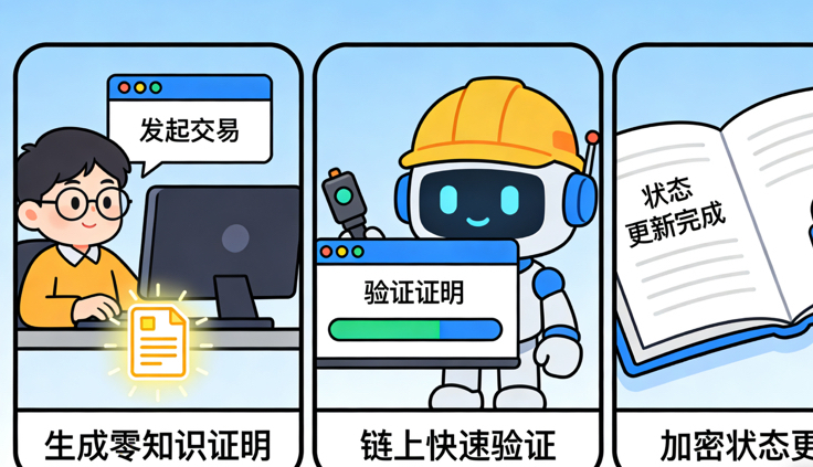 零知识证明的三大特点,保证了这套逻辑能跑通:一是真的就能过,只要交易合法,证明一定有效;二是假的过不了,没人能伪造证明骗人;三是除了结果啥都看不到,验证完只知道“交易有效”,不知道任何隐私内容。