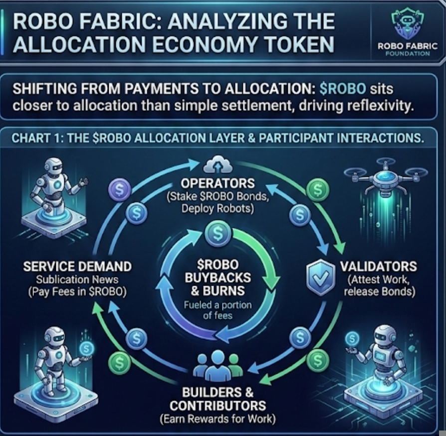 I remember watching a few infrastructure tokens reprice almost instantly the moment the market decided they were “not just another payments rail.” That shift usually happens when traders realize the token is sitting closer to allocation than settlement. Settlement is useful, but allocation is where markets tend to get more reflexive. What caught my attention with Fabric was that its own language keeps pushing past robot payments and into something broader: identity, coordination, deployment, and capital allocation for robotic labor. The official framing is pretty explicit about this. Fabric says it is building a payment, identity, and capital allocation network so robots can operate as economic participants, and its blog describes coordination pools where community-supplied stablecoins support robot deployment while $ROBO sits inside the operating and settlement layer.