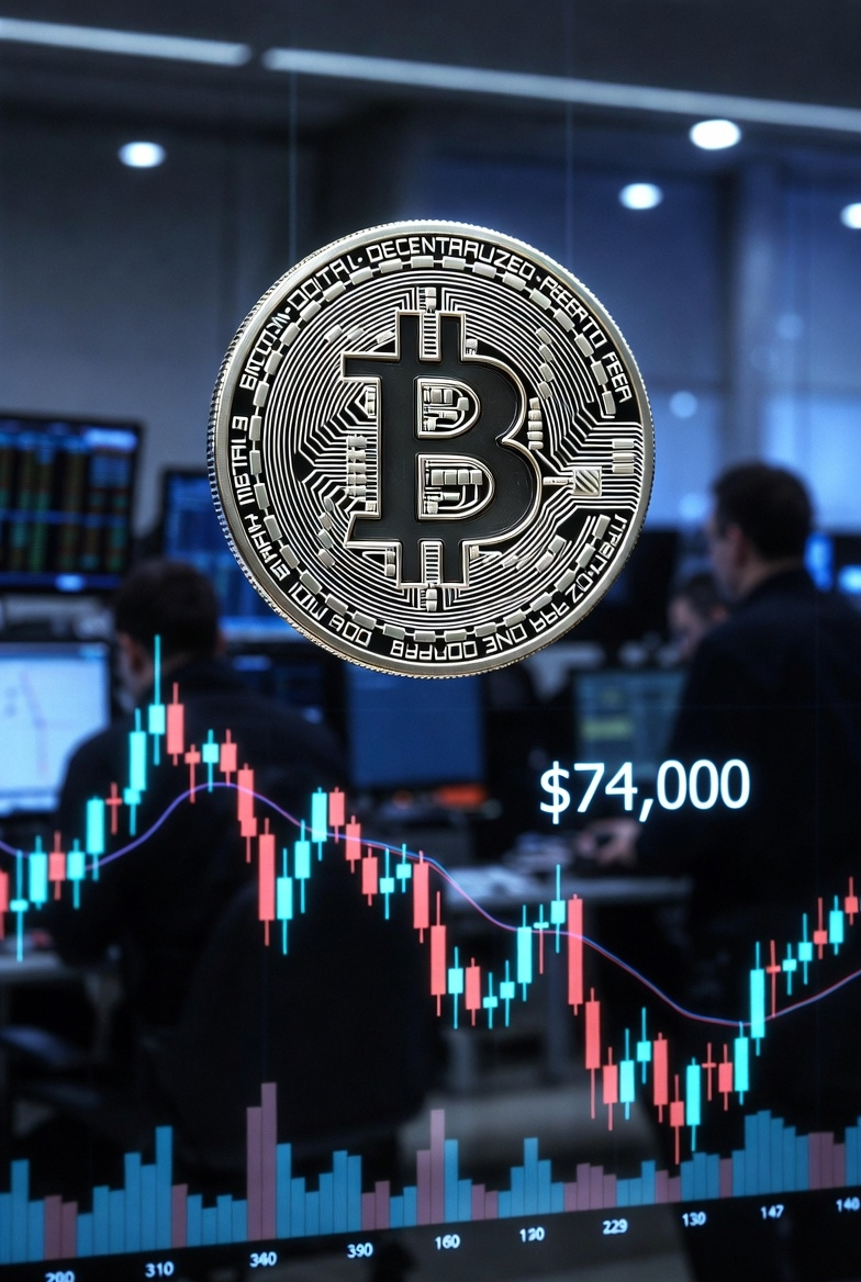 Bitcoin trades around **$74,000â$74,300** (March 18, 2026, midday UAE), stalling after failing to hold $75Kâ$76K highs.