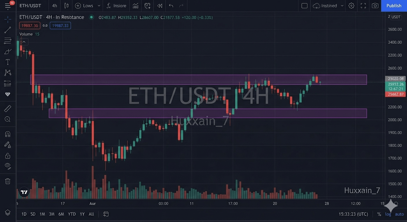 The Ethereum chart highlights strong consolidation. We have mapped out the primary support and resistance zones that define the current trading range. A breakout from this pattern often signals the start of the next major move for the broader altcoin market.