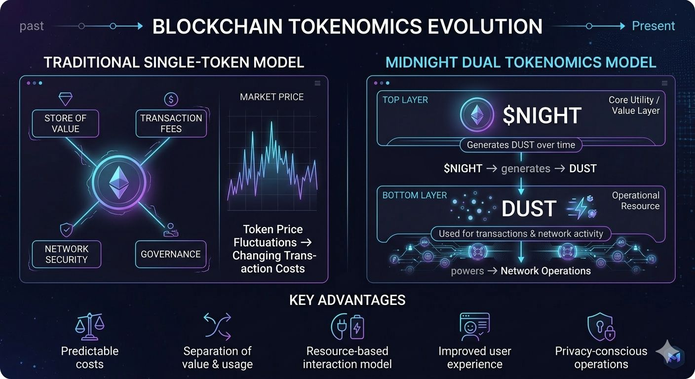 In my view, the dual tokenomics model is not just a technical feature. It represents a different way of thinking about blockchain economies. By separating the asset that holds value from the resource that powers activity, Midnight aims to create a more balanced and usable system.