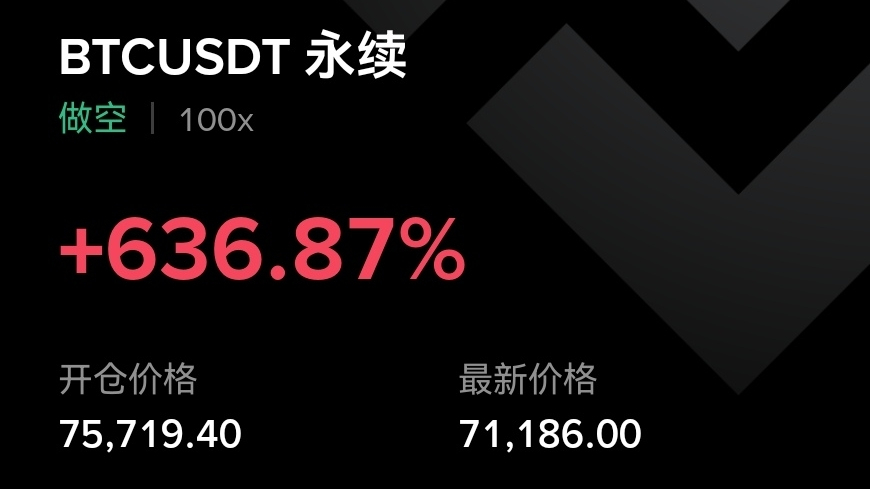 Ora è il 19 marzo 2026 alle 00:08. Dopo aver ridotto il 25% della posizione short BTC75700 a 72588, attualmente detengo il 25% della posizione e intendo puntare a 68588. Oggi ho realizzato un profitto del 20,61%.