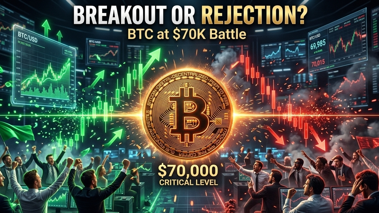 Bitcoin ($BTC ) is currently trading around the $70,000 resistance zone, a level that has become the main focus for retail traders. The market is showing clear signs of a battle between buyers and sellers, making this a निर्णायक moment for short-term price direction.