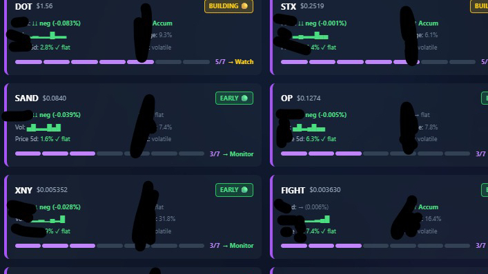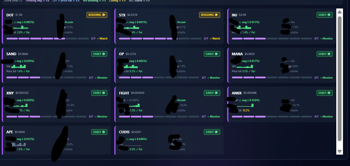 $1.56-0.083%🟡 BUILDING 5/7STX$0.2519-0.001%🟡 BUILDING 5/7INJ$3.09-0.011%🟢 EARLY 3/7SAND$0.0840-0.039%🟢 EARLY 3/7OP$0.1274-0.005%🟢 EARLY 3/7MANA$0.0925-0.017%🟢 EARLY 3/7APE$0.0956-0.012%🟢 EARLY 3/7ANKR$0.005096-0.256%🟢 EARLY 3/7FIGHT$0.003630—🟢 EARLY 3/7CUDIS$0.0201-0.040%🟢 EARLY 3/7