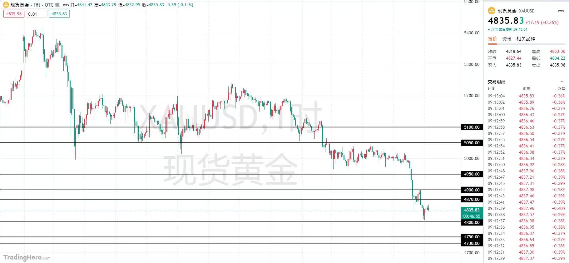 L'oro ha toccato un minimo di circa 4805, subendo un forte crollo durante l'intera giornata, con un ribasso drammatico; i venditori sono aggressivi e i compratori si sono ritirati, registrando la massima perdita giornaliera recente. Oggi, il mercato è dominato dalla decisione della Federal Reserve, con un'esplosione di notizie negative: attualmente, il prezzo dell'oro ha rotto il supporto chiave con una grande candela ribassista, violando tutti i supporti chiave. Il sistema delle medie mobili è disposto in modo ribassista, e il canale di discesa è completamente aperto. Dopo due giorni di correzione a candele doji, la tendenza ribassista è inarrestabile. Se il prezzo scende sotto la soglia importante di 4900, potrebbe continuare a sfidare la posizione del precedente minimo intorno a 4782, raggiungendo la posizione del trimestre intorno a 4730. Oggi l'oro rimane orientato verso una strategia ribassista. In sintesi, per oggi, l'idea operativa a breve termine suggerita dal vecchio Yu è di concentrarsi sulle vendite a rialzo, con acquisti a basso ritracciamento come supporto. A breve termine, si deve prestare attenzione alla resistenza in area 4900-4950 e al supporto in area 4800-4750.