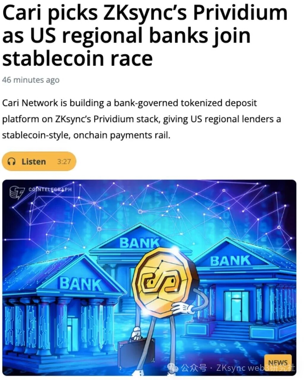 L'azione di queste cinque banche potrebbe essere solo l'inizio. Una volta che si forma l'effetto rete dei depositi tokenizzati, la logica sottostante di pagamenti e regolamenti sarà riscritta - e ZKsync si trova al centro di questo punto di svolta storico.