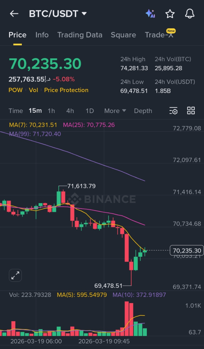 **Bitcoin (BTC)** is currently trading in the **$70,000–$72,000 range**, after experiencing a short-term correction from its recent highs near $74,000. This pullback has sparked concern among short-term traders, but the price continues to hold a crucial support zone around $70K — a level many analysts consider critical for maintaining bullish structure.