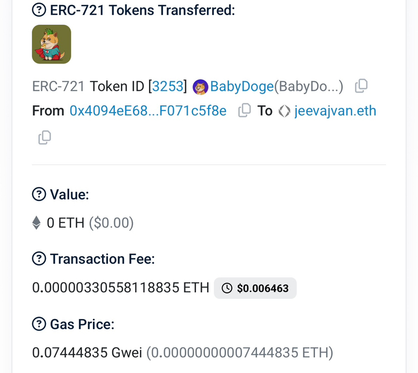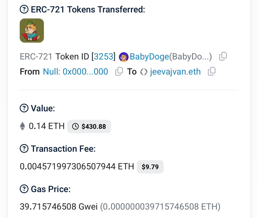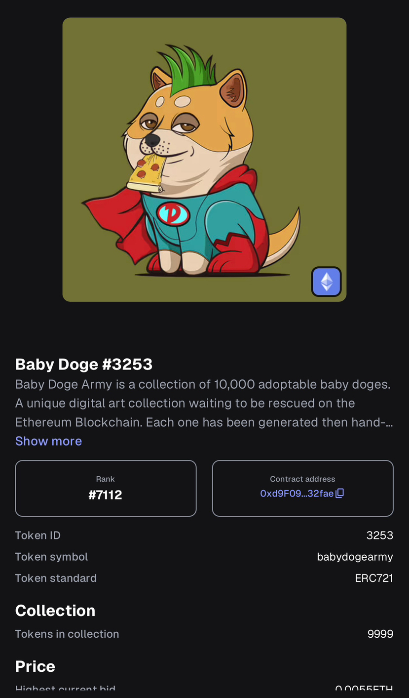 So I invested in BabyDoge — both the token and the NFT.