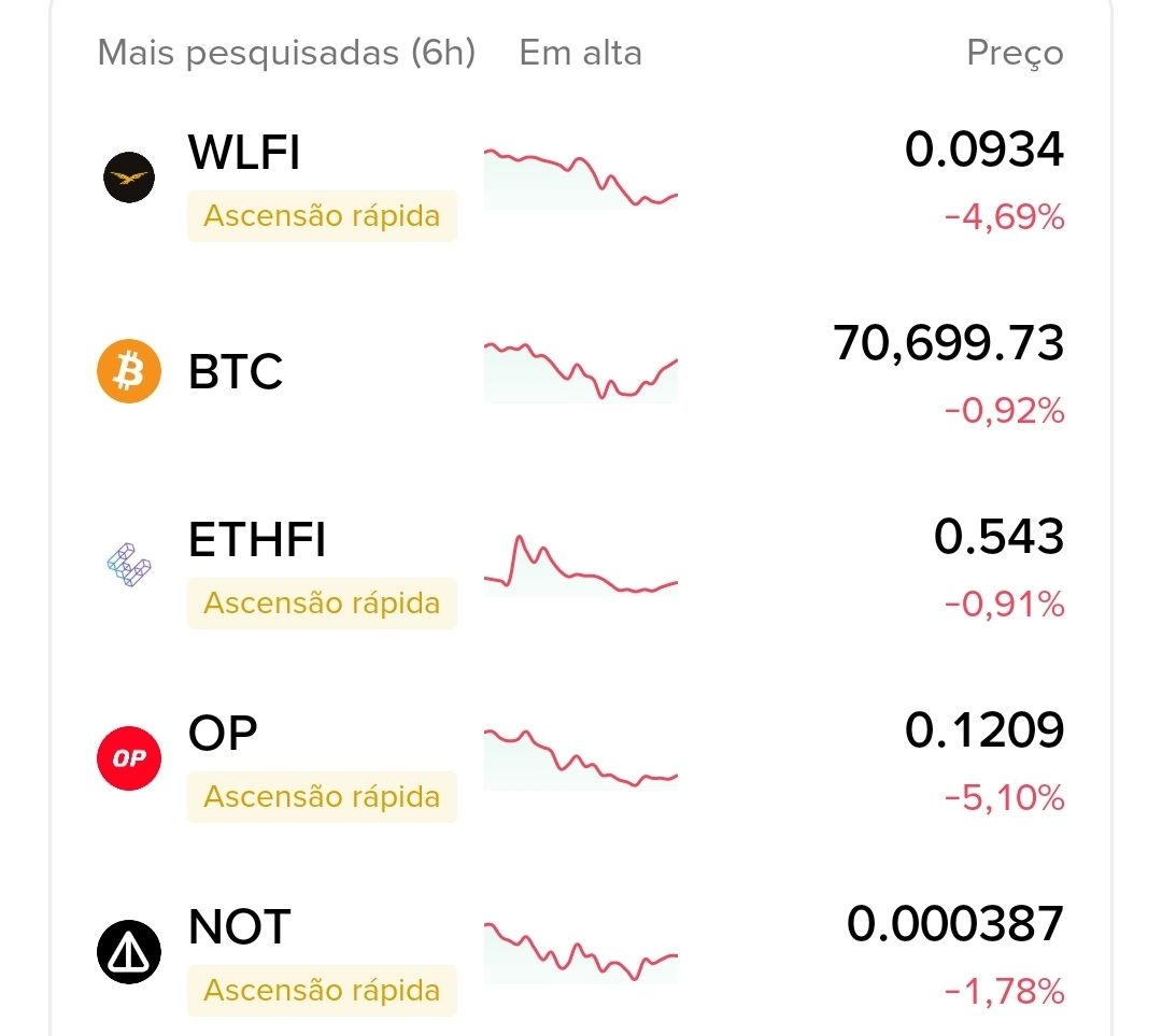 - WIFI: Queda de -4,69% para 0,0934. Pode estar testando suporte após pump recente. Se segurar 0,090, pode haver reversão.