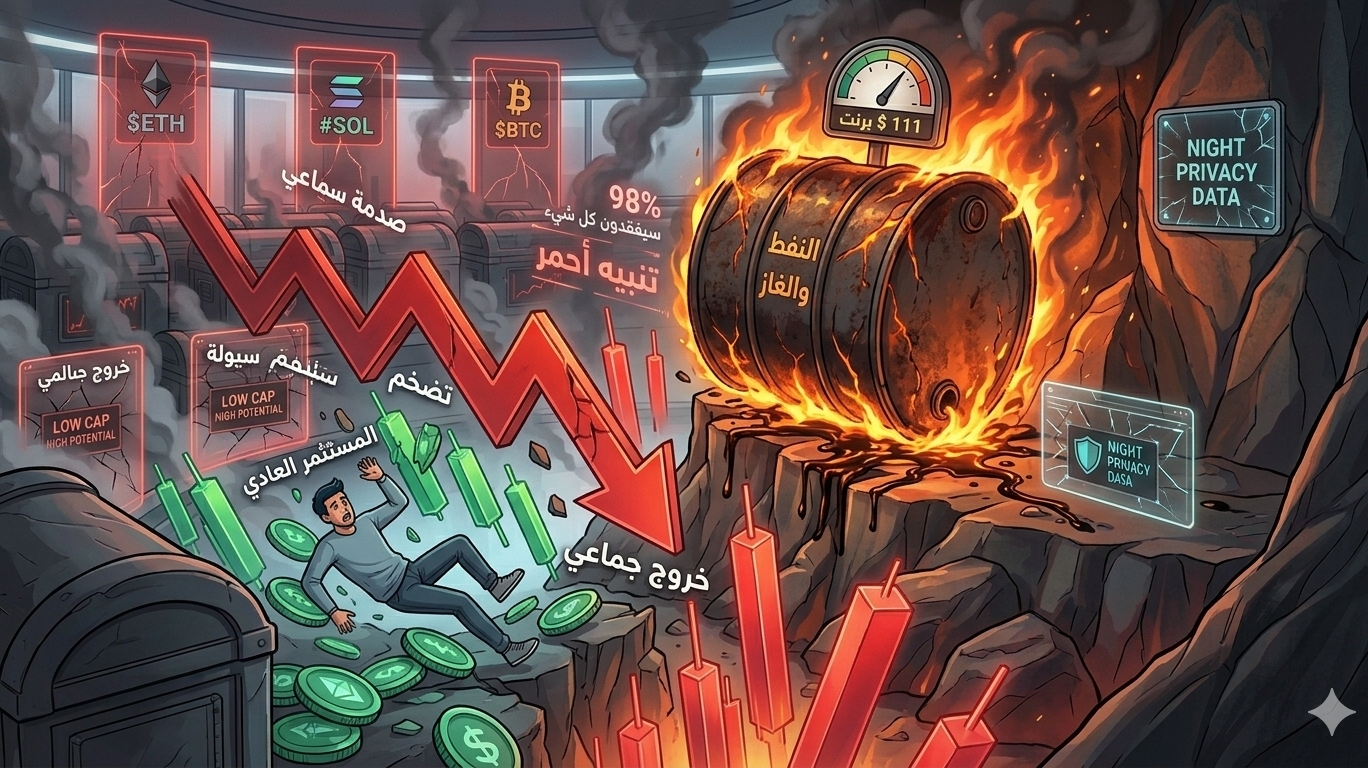الأسواق لا تنهار بشمعة واحدة، بل تنهار عندما تبقى الطاقة مرتفعة لفترة طويلة بينما يتظاهر الجميع أن "كل شيء بخير". المال يهرب الآن من المخاطرة إلى الأمان والطاقة.