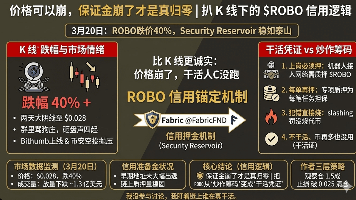 ROBO这波40%的天地针,表面看是空投砸盘、Bithumb利好出尽。但Security Reservoir里那批没跑的人,比K线更诚实。