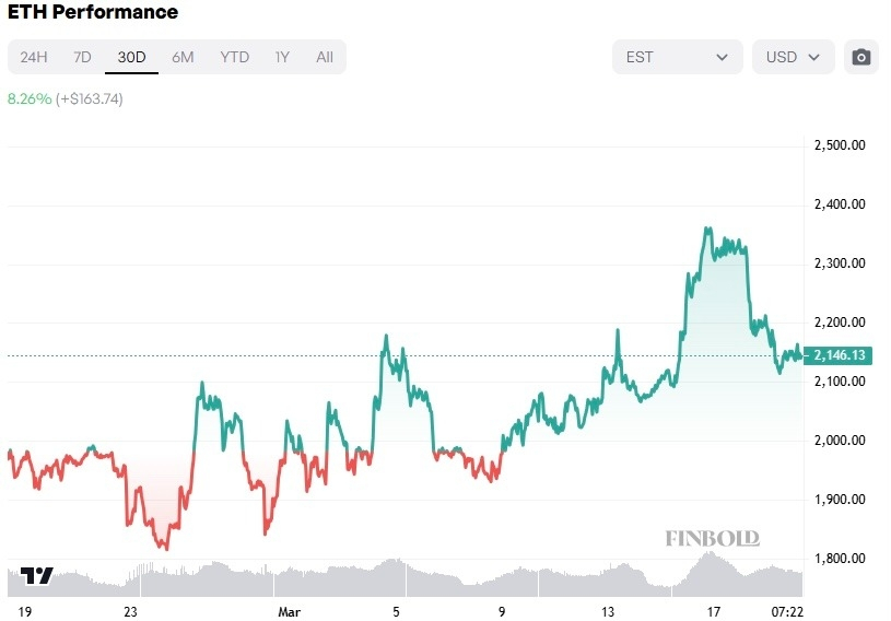 Prestazioni del prezzo di ETH 30D. Fonte: Finbold