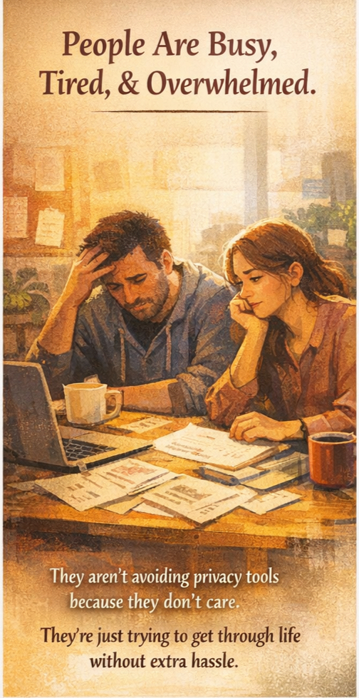Because privacy will never become universal by asking exhausted people to work harder for it.