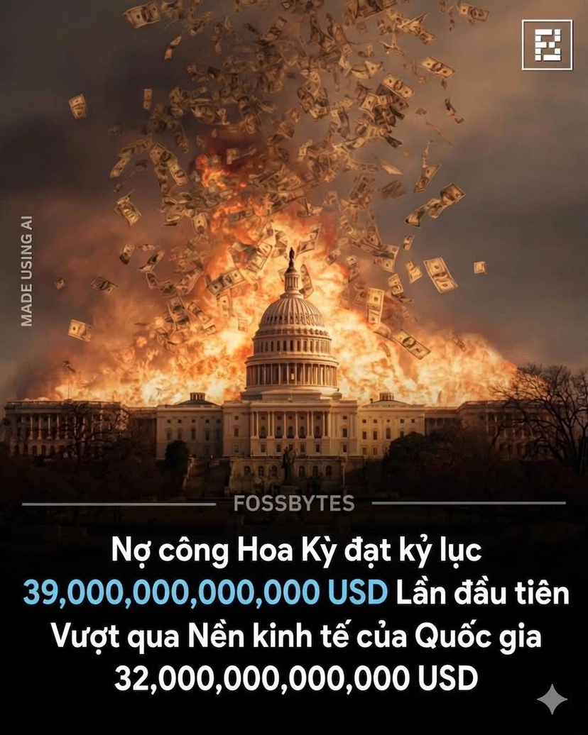 Nợ quốc gia của Mỹ đã vượt mốc 39 nghìn tỷ đô la, lớn hơn cả nền kinh tế 32 nghìn tỷ đô la của nước này. Điều này xảy ra chỉ vài tuần sau cuộc chiến tranh Mỹ-Israel ở Iran, đánh dấu một mức kỷ lục mới.
