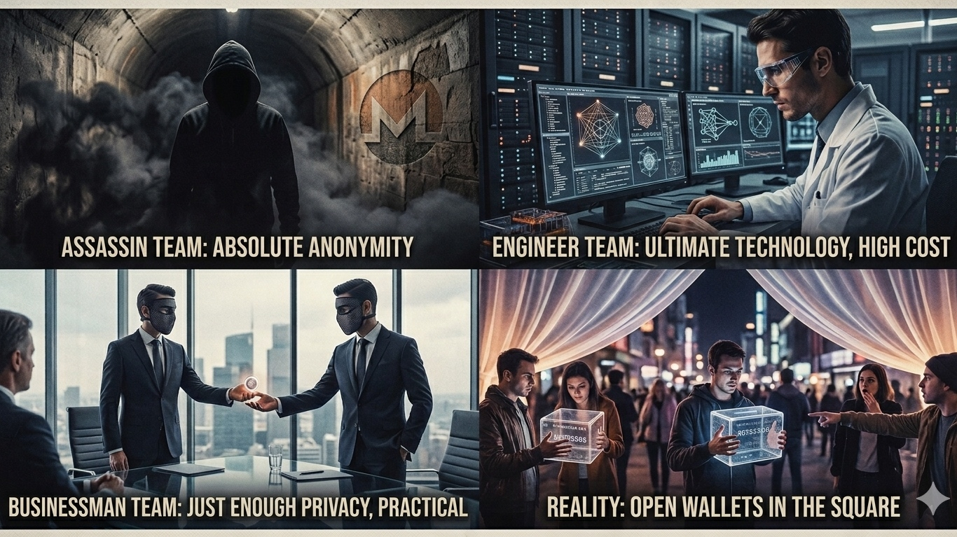 Stiamo giocando a un gioco piuttosto strano: tirare fuori il proprio portafoglio in mezzo alla piazza e chiamarlo "trasparenza della blockchain". In realtà, la privacy (Privacy) nel crypto di oggi è come un bene di lusso. Devi sempre scegliere: o essere completamente anonimo e isolato, o essere comodo ma accettare di essere "osservato" in ogni centesimo. È per questo che sono nate le ideologie della Privacy, ognuna delle quali sceglie un modo molto diverso di tirare "le tende".