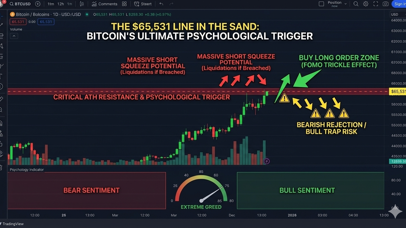 Bitcoin is a speculative asset driven largely by narrative and sentiment. The $65,531 level sits right at the doorstep of historical resistance. For a trader, "touching" this price isn't just a technical achievement; it’s a signal that the bulls have successfully marched through every lower sell wall and are ready to challenge the "Final Boss."