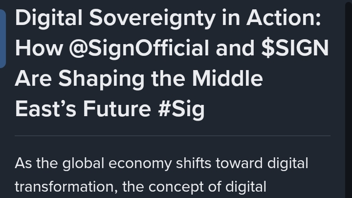 Nel contesto del Medio Oriente, dove innovazione e diversificazione economica sono le massime priorità, soluzioni come @SignOfficial offrono un percorso verso una crescita digitale indipendente e sicura. Abilitando la sovranità digitale, la piattaforma consente a nazioni e organizzazioni di controllare il proprio futuro digitale senza compromettere l'efficienza o la scalabilità.