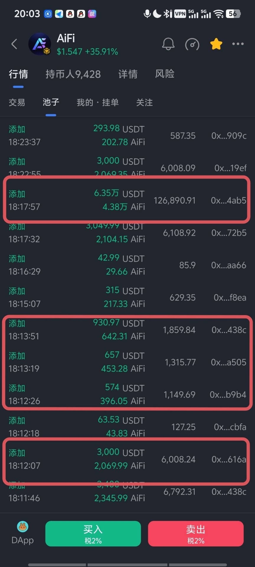Un aumento di 60.000+ U in un'unica operazione dimostra che i capitali di livello istituzionale sono già entrati! Nel mondo delle criptovalute, le azioni dei grandi capitali sono il miglior indicatore; se investono pesantemente, significa che la logica di aumento di AiFi è completamente valida, lo spazio futuro è illimitato!