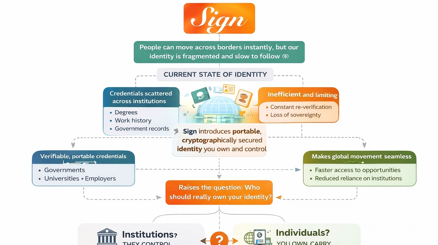 What makes the idea behind Sign interesting is how it flips that relationship. Instead of identity being something you repeatedly request or rebuild, it becomes something you carry with you. Not as a document that needs constant checking, but as a proof that stands on its own. Something that doesn’t lose its credibility just because you’ve moved from one system to another.