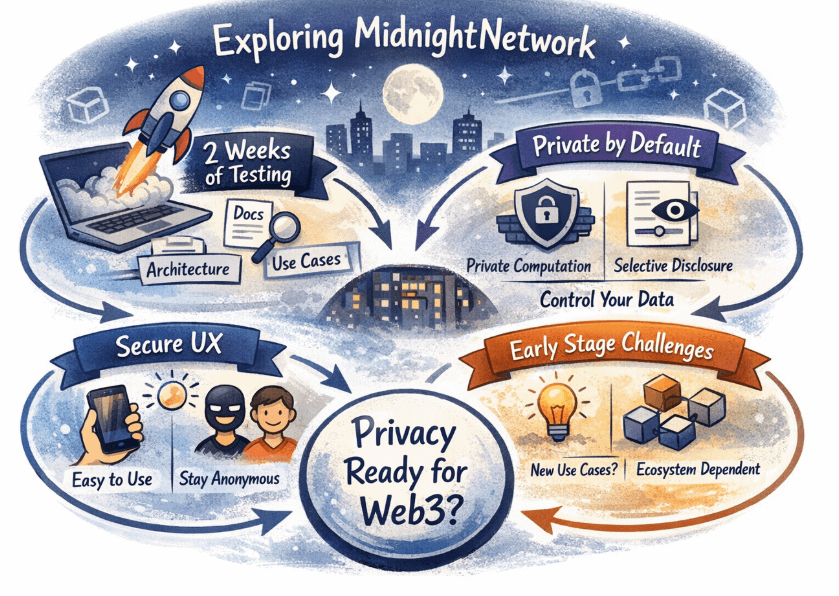 Пару недель назад я решил глубже посмотреть на MidnightNetwork. Без ожиданий. Просто как обычно — открыть доки, пройтись по архитектуре, попробовать понять, где здесь реальная ценность, а где просто нарратив.
