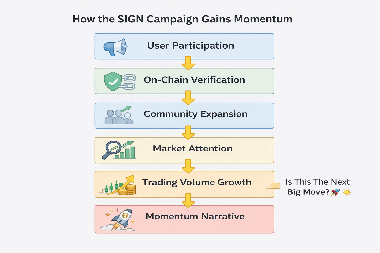 Un altro fattore importante che guida l'attuale eccitazione è il meccanismo di ricompensa della campagna. Incoraggiando la partecipazione reale all'interno dell'ecosistema, la campagna SIGN allinea gli incentivi tra utenti, costruttori e la più ampia comunità crypto. I partecipanti precoci beneficiano spesso di più quando i progetti infrastrutturali guadagnano slancio, e questa dinamica crea una potente combinazione di curiosità e opportunità. Man mano che l'impegno aumenta e le discussioni si espandono tra le comunità di trading, la narrazione attorno a SIGN continua a rafforzarsi.