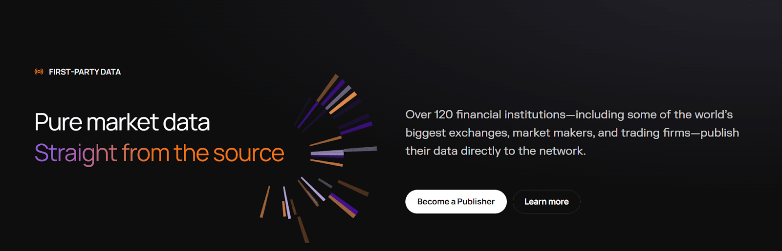 Pyth ottiene dati finanziari direttamente da istituzioni e li spinge on-chain in tempo reale.