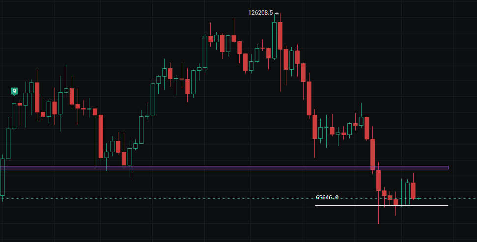La scorsa settimana ho anche menzionato che questa settimana probabilmente continuerà a indebolirsi, i prezzi scenderanno ulteriormente. Attualmente, il supporto più critico si trova vicino al prezzo di apertura settimanale di 66000, qui c'è anche la posizione della linea di tendenza giornaliera, è probabile che ci sia un breve rimbalzo o una correzione laterale. Ma finché il mercato non mostrerà segnali di forte inversione, questa posizione sarà comunque facilmente rotta; una volta superata, si aprirà una terza fase di ribasso, è probabile che si verifichi un rapido calo, diretto verso il basso sotto i 60000. Dopo la rottura, credo che ci vorranno almeno alcuni mesi per una correzione oscillante; in questa fase è probabile che sia un ciclo di accumulo da parte dei grandi investitori, che sarà accompagnato da ripetute prove, movimenti a spillo e simili. Finché il mercato non avrà mostrato una struttura chiara, non sarà facile comprare sul fondo; una volta che il segnale appare, ci posizioneremo in anticipo.