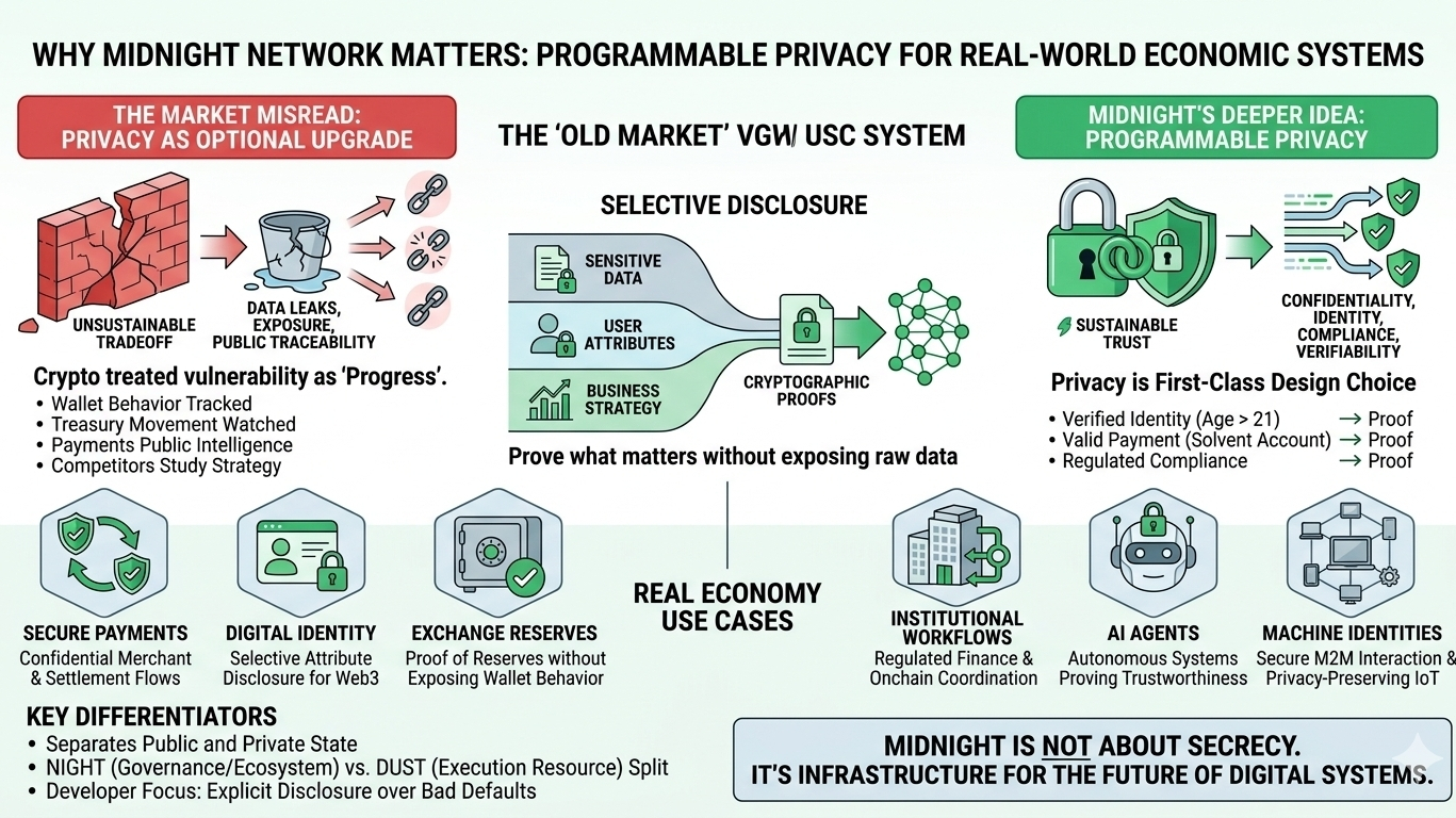 Something secondary. Something you add once the real infrastructure is already built. Something that matters only to a small corner of users or to people who are overly focused on ideology. I think that was a serious misread from the beginning, and Midnight Network sits right in the middle of that mistake.