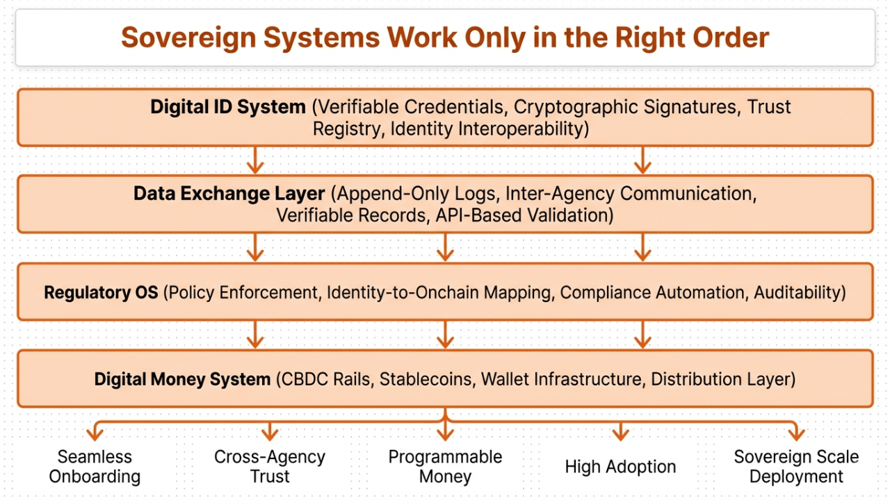 "un sistema di denaro digitale senza uno strato di identità sovrana sottostante non è infrastruttura. è un portafoglio senza dove atterrare."