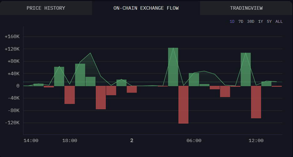 Puoi vedere grandi picchi verdi — quello è quando molti token sono entrati negli exchange o nei pool. Grandi picchi rossi — i token hanno LASCIATO gli exchange o i pool.