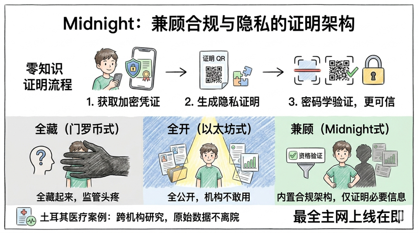 $NIGHT Ma usando questa logica di Midnight, devono solo dimostrare alla banca "questa transazione soddisfa i requisiti anti-riciclaggio", la banca può verificare la conclusione, ma non può vedere chi è il cliente o qual è il prezzo della transazione. Questo è più sicuro che consegnare i dati originali - i dati originali potrebbero essere falsificati, ma la prova a conoscenza zero è stata verificata crittograficamente.