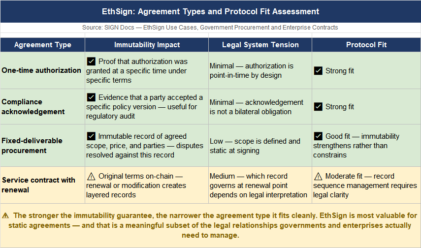honestly dont know if EthSign is the right infrastructure for dynamic legal relationships that evolve after signing, or whether it is precisely the right tool for a specific subset of agreements where immutable proof of initial execution is the thing that matters most.