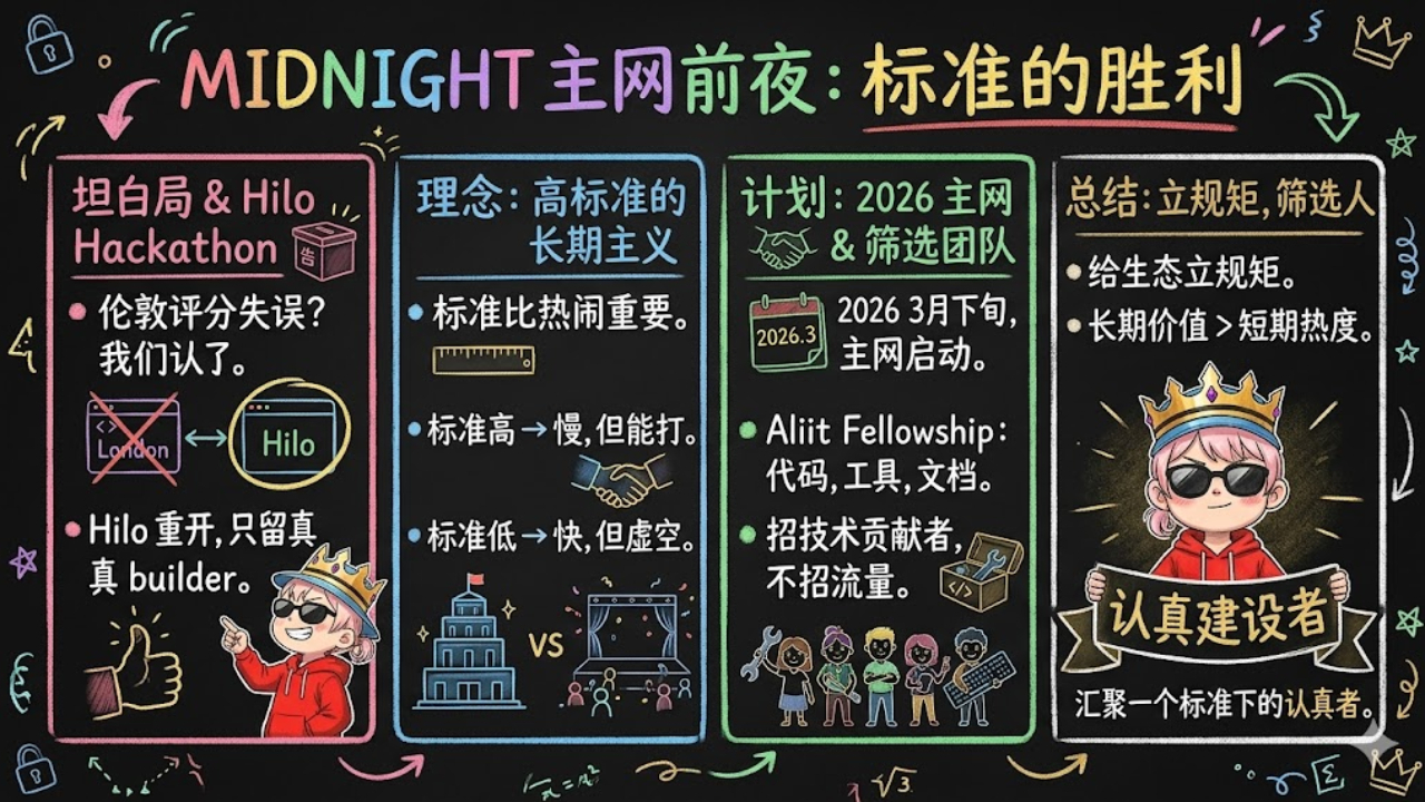 Le recenti azioni di Midnight, invece, mi fanno pensare che prima della vigilia della mainnet abbiano fatto una cosa ancora più difficile, chiarendo prima 'che tipo di costruzione conta come costruzione'.