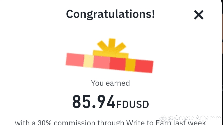 La scorsa settimana, mi sono classificato tra i migliori creatori su Binance Square—guadagnando 85.94 FDUSD con una commissione del 30% attraverso Write to Earn. Niente annunci a pagamento. Niente scorciatoie. Solo pura strategia, coerenza e contenuti orientati al valore.